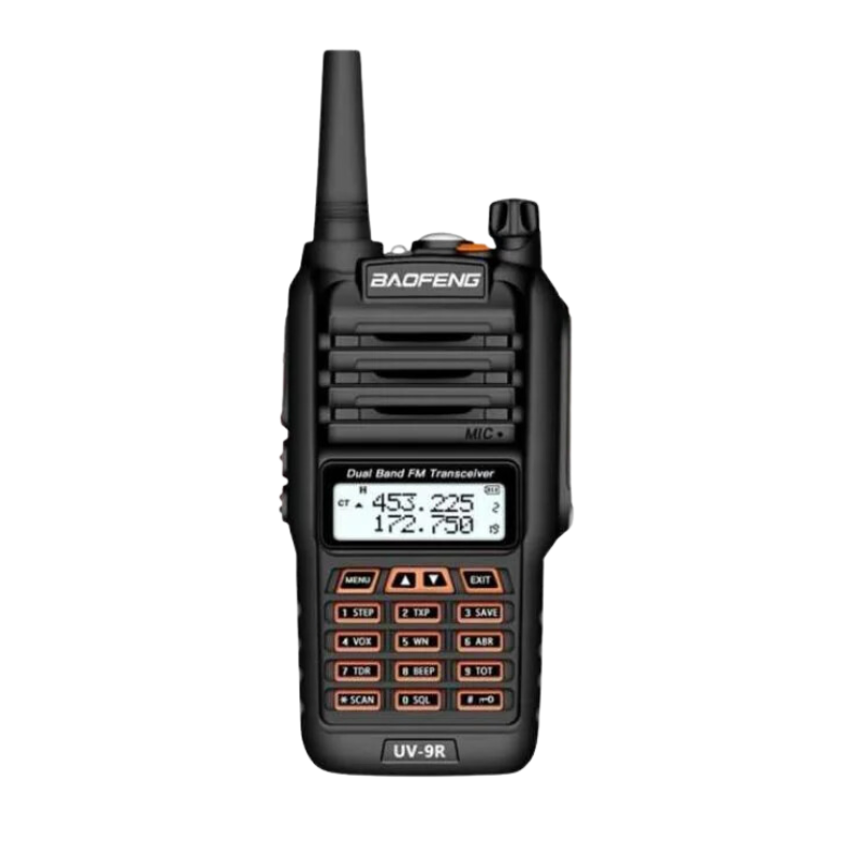 Φορητός πομποδέκτης Baofeng BF-UV9R PLUS 8w,κατάλληλος για οπουδήποτε απαιτείται υψηλή απόδοση και επαγγελματική χρήση. Είναι ιδιαίτερα μικρός σε μέγεθος με μεγάλη ισχύ 8w και ελαφρύ ενισχυμένο περίβλημα αλουμινίου για μεγάλη αντοχή. Διαθέτει υψηλή ποιότητα, κορυφαία τεχνολογία πάρα πολλές ευκολίες. Mεγάλη φωτιζόμενη οθόνη με διπλή ένδειξη συχνότητας V/U, U/V, U/U και V/V. Επίσης διαθέτει και ραδιόφωνο FM. Η μπαταρία του είναι τύπου LiOn υψηλής χωρητικότητας που υπόσχεται μεγάλη αυτονομία και φορτίζει με τον αυτόματο επιτραπέζιο ταχυφορτιστή που συνοδεύει την συσκευή. Στις λειτουργίες του Baofeng BF-UV9R PLUS περιλαμβάνονται κωδικοποίηση και αποκωδικοποίηση CTCSS και DCS υποτόνων, αποστολή τόνων DTMF, VOX, πολλαπλές επιλογές βήματος συντονισμού από 2.5 μέχρι 25KHz, 128 μνήμες, επιλογή Narrow και Wide FM διαμόρφωσης, επιλογή χαμηλής και υψηλής ισχύος, πλήρες αριθμητικό πληκτρολόγιο, ρυθμιζόμενη μετατόπιση συχνότητας για πρόσβαση σε επαναλήπτες, λειτουργίες σάρωσης, φωνητική καθοδήγηση.Mπορεί να επικοινωνεί και με τις συχνότητες PMR, έτσι ώστε να δίνετε το παρόν σε όλες τις συναντήσεις με άλλες συσκευές PMR446, καθώς επίσης μπορούν να περαστούν συχνότητες Marine για ναυτική χρήση.