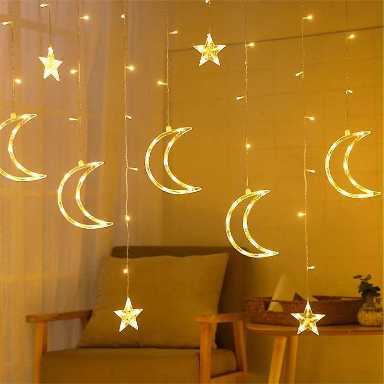 Χριστουγεννιάτικα Λαμπάκια Led Κουρτίνα με Φεγγάρια – Αστέρια