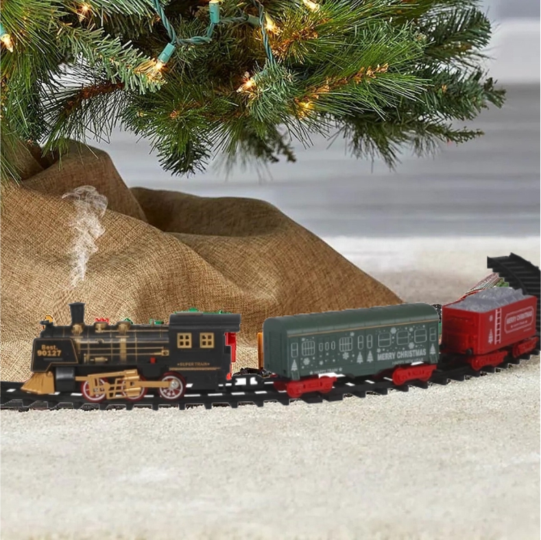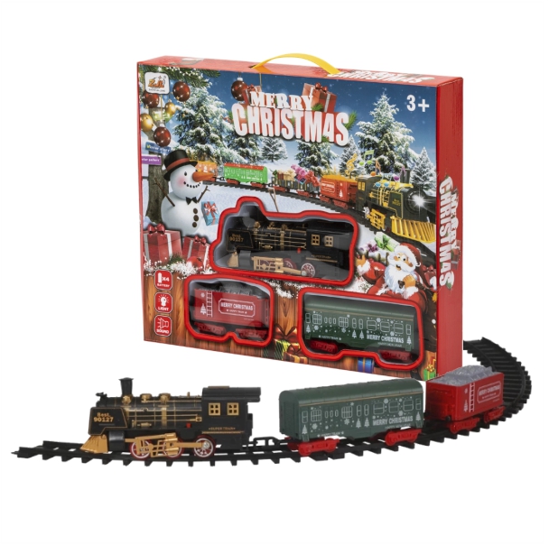Χριστουγεννιάτικο τρενάκι ό,τι πιο μαγικό για τον Χριστουγεννιάτικο στολισμό, φέρνοντας το Orient Express στο σπίτι σας και γεμίζοντας χαρά μικρούς και μεγάλους. Με 2 βαγόνια και μία μηχανή. Διαστάσεις Ράγας: 78cm. Τρενάκι ιδανικό για να διακοσμήσετε τη βάση του χριστουγεννιάτικου δέντρου με φώτα και ήχους. Λειτουργεί με 4 μπαταρίες (δεν περιλαμβάνονται).