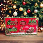 Χριστουγεννιάτικο τρενάκι ό,τι πιο μαγικό για τον Χριστουγεννιάτικο στολισμό, φέρνοντας το Orient Express στο σπίτι σας και γεμίζοντας χαρά μικρούς και μεγάλους. Με 2 βαγόνια, μία μηχανή, ένα έλκηθρο. Διαστάσεις Ράγας: 78cm, 78x103cm. Τρενάκι ιδανικό για να διακοσμήσετε τη βάση του χριστουγεννιάτικου δέντρου με φώτα και ήχους. Λειτουργεί με 4 μπαταρίες (δεν περιλαμβάνονται).
