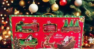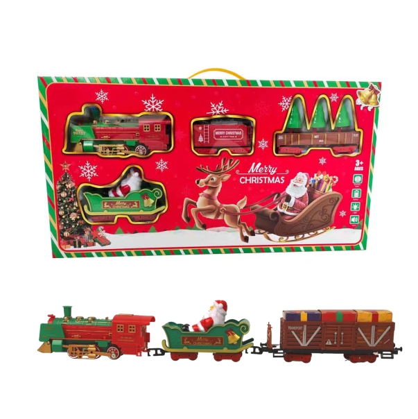 Χριστουγεννιάτικο τρενάκι ό,τι πιο μαγικό για τον Χριστουγεννιάτικο στολισμό, φέρνοντας το Orient Express στο σπίτι σας και γεμίζοντας χαρά μικρούς και μεγάλους. Με 2 βαγόνια, μία μηχανή, ένα έλκηθρο. Διαστάσεις Ράγας: 78cm, 78x103cm. Τρενάκι ιδανικό για να διακοσμήσετε τη βάση του χριστουγεννιάτικου δέντρου με φώτα και ήχους. Λειτουργεί με 4 μπαταρίες (δεν περιλαμβάνονται).