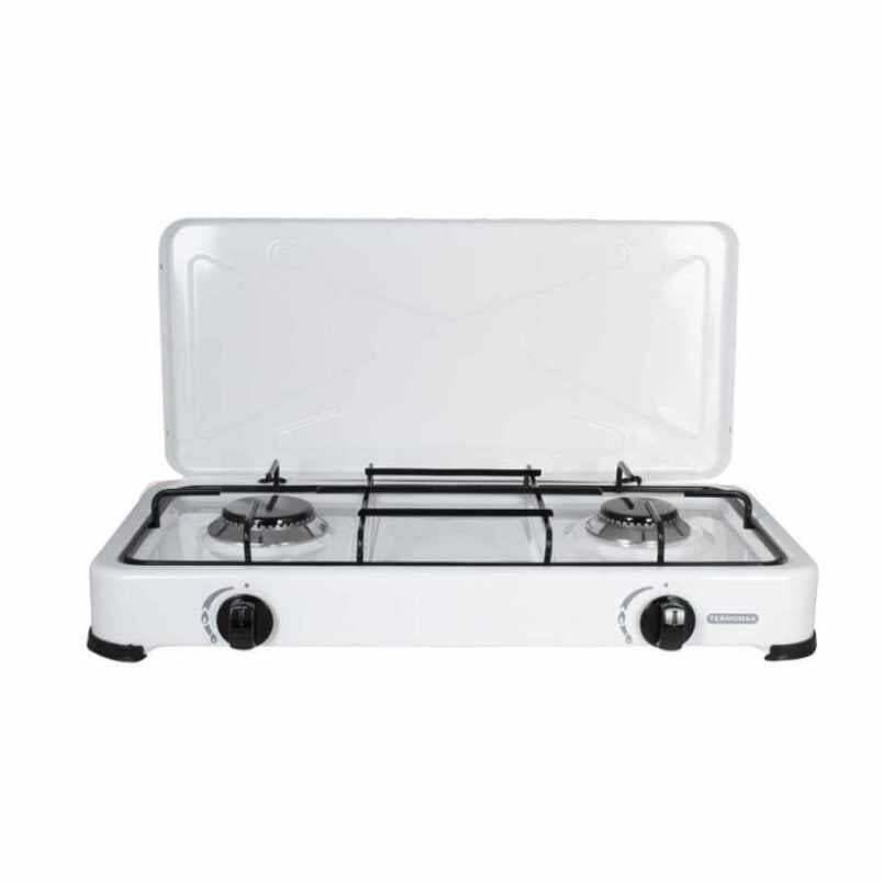 Εστία αερίου με δυο καυστήρες. Eπιφάνεια απο σμάλτο και σχάρα απο χάλυβα. Καυστήρας αλουμινίου 1,45kW – 105,45g/h. Χαμηλή κατανάλωση φυσικού αερίου. Διαθέτει ρυθμιζόμενο θερμοστάτη.