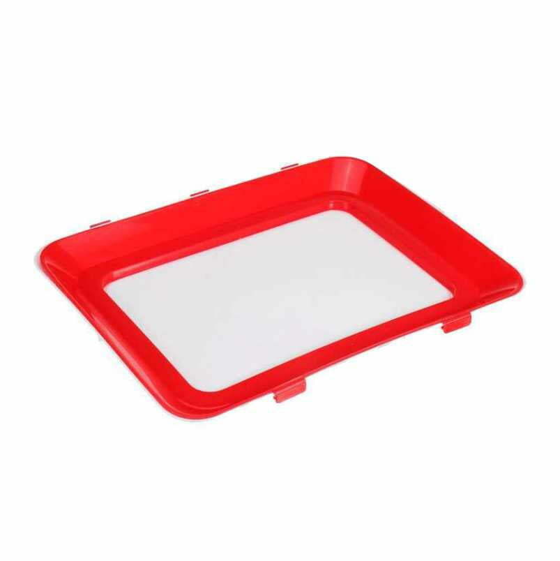 Δεν ήταν λίγες οι φορές που αναγκαστήκαμε να πετάξουμε το φαγητό, τη σαλάτα ή το γλυκό που περίσσεψε, αντί να το αποθηκεύσουμε για την επόμενη φορά. O δίσκος συντήρησης των τροφίμων πρόκειται για τη νέα, επαναστατική λύση αποθήκευσης. Τοποθετήστε το φαγητό που περίσσεψε μέσα στο δίσκο, κλείστε το ελαστικό καπάκι σιλικόνης με το διάφανο φιλμ και είστε έτοιμοι. Σε λιγότερο από ένα λεπτό! Πείτε αντίο στις άσχημες μυρωδιές, τα χυμένα υγρά και τα χαλασμένα τρόφιμα! Το φιλμ είναι εξαιρετικά ανθεκτικό και προσφέρει αεροστεγές σφράγισμα. Προσαρμόζεται αυτόματα στο σχήμα των τροφίμων σας. Έτσι, θα διατηρήσετε φρέσκο το φαγητό σας για περισσότερο χρονικό διάστημα. Μπορείτε ακόμη να προετοιμάσετε το κολατσιό των παιδιών για το σχολείο, το γεύμα σας για το πικνικ, το δεκατιανό για τη δουλειά ή οτιδήποτε άλλο επιθυμείτε. Αν βγάλετε το καπάκι, μετατρέπεται αυτομάτως σε έναν πρακτικό δίσκο σερβιρίσματος. Βάλτε τάξη στο ψυγείο σας. Όλα πια θα είναι οργανωμένα και νοικοκυρεμένα. Είναι κατάλληλο για πλύσιμο στο πλυντήριο πιάτων.