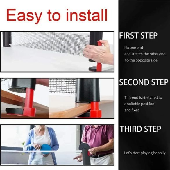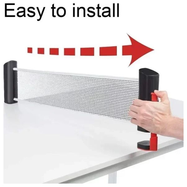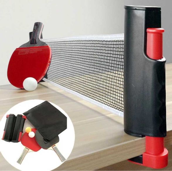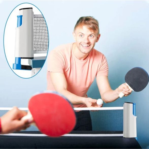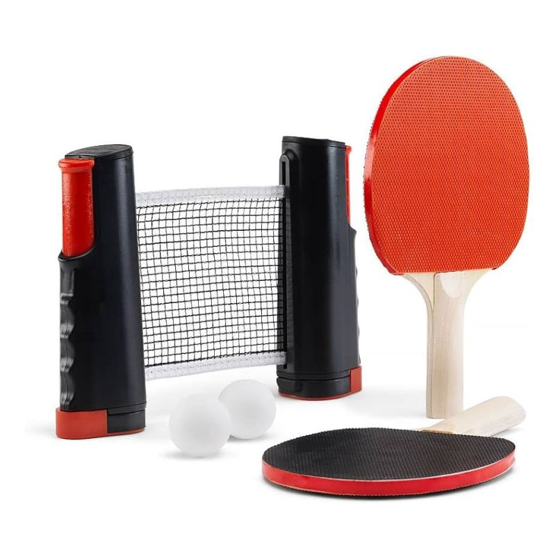 Eπιτραπέζιο σετ πινγκ-πονγκ είναι ιδανικό για στιγμές ευχαρίστησης μεταξύ μελών της οικογένειας, φίλων, συμμαθητών, καθώς και συναδέλφων. Είτε βρίσκεστε στο σπίτι, είτε σε ταξίδι, κάμπινγκ, πικνίκ. Διαθέτει σετ ρακέτας πινγκ-πονγκ 3 λευκές μπάλες και 1 πτυσσόμενο δίχτυ πινγκ πονγκ για οποιοδήποτε τραπέζι με σύστημα κλιπ για παρατεταμένη χρήση και αντιολισθητική επιφάνεια για παιχνίδι σε εσωτερικούς ή εξωτερικούς χώρους. Οι ρακέτες καλύπτονται με σφουγγάρι 2mm υψηλής ελαστικότητας και καουτσούκ premium διπλής όψης που εξασφαλίζει μια μεγάλη απόδοση της ρακέτας του πινγκ-πονγκ. Αυτό σας επιτρέπει να έχετε υψηλή απόδοση στο παιχνίδι πινγκ-πονγκ. Εφαρμόζει σε τραπέζια πάχους έως και 5 cm. Το άνοιγμα του φιλέ φτάνει τα 172 cm.