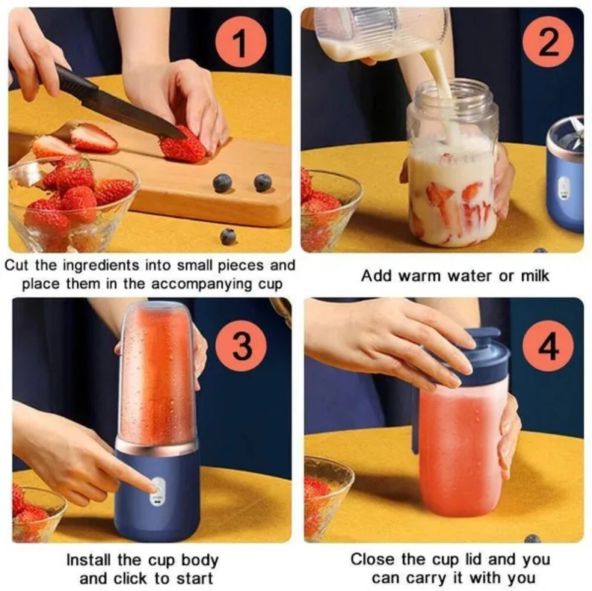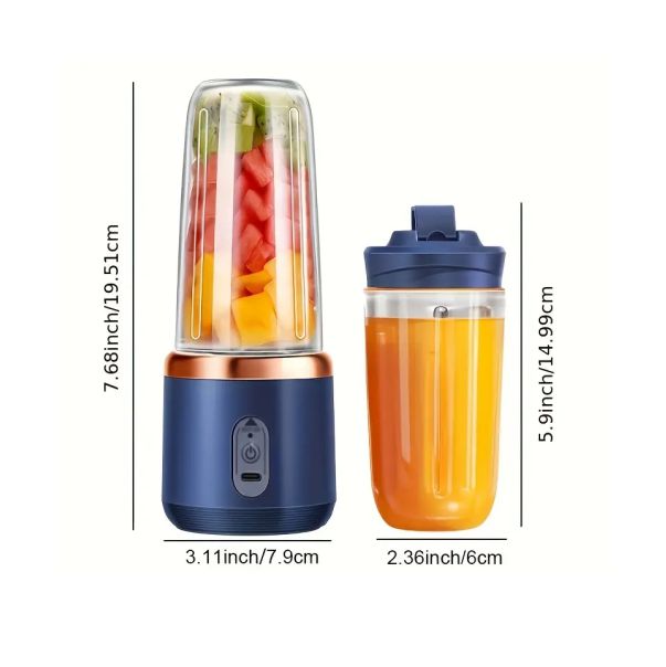 Επαναφορτιζόμενος φορητός αποχυμωτής μπλέντερ που διαθέτει ποτήρι. Είναι κατάλληλος για την παρασκευή smoothies, χυμών και άλλων αναψυκτικών ποτών σε κινητικές δραστηριότητες και ταξίδια. Έχει χωρητικότητα 400ml, καθιστώντας τον κατάλληλο για μεμονωμένες μερίδες smoothies ή χυμού. Είναι επαναφορτιζόμενος, οπότε μπορείτε να τον φορτίσετε και να τον χρησιμοποιήσετε χωρίς την ανάγκη συνεχούς σύνδεσης σε πηγή ηλεκτρικού ρεύματος. Διαθέτει ισχυρό κινητήρα για αποτελεσματικό μπλένταρισμα των συστατικών. Λόγω του μικρού του μεγέθους και της δυνατότητας επαναφόρτισης, είναι ιδανικός για ταξίδια, προπόνηση ή για τη χρήση στο γραφείο.