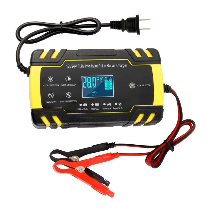 Φορτιστής μπαταρίας αυτοκινήτου 12V – 24V. Mε οθόνη LCD. Σας βοηθήσει να επιδιορθώσετε την απώλεια της μπαταρίας σας και να παρατείνετε τη διάρκεια της. Για μπαταρίες οι οποίες είναι καιρό ανενεργές ή παλιές μπορείτε να επιλέξετε τη λειτουργία “Repair” ώστε να προσπαθήσετε να τις επαναφέρετε. Διαθέτει χαρακτηριστικά ασφαλείας, όπως προστασία αντίστροφης πολικότητας, προστασία υπερβολικού ρεύματος, προστασία υπέρτασης, προστασία υπερφόρτισης και προστασία υπερθέρμανσης. Κατάλληλος για μπαταρίες 12V αλλά και 24V.