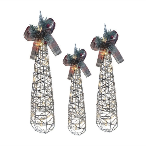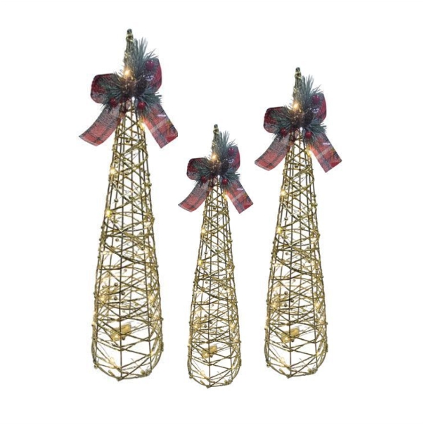 Δημιουργήστε την απόλυτη Χριστουγεννιάτικη ατμόσφαιρα με διακοσμητικά δέντρα με Led. Διακοσμήστε τον χώρο σας με το κομψό φωτιζόμενο δεντράκι, ιδανικό για τις γιορτινές σας συνθέσεις. Με μεταλλικό σχέδιο και λαμπερές λεπτομέρειες γκλίτερ, χαρίζει λάμψη και ατμόσφαιρα πολυτέλειας σε κάθε γωνιά. Διατίθεται σε δύο εντυπωσιακές αποχρώσεις  ασημί και χρυσό και σε δύο διαστάσεις 40cm και 60cm.