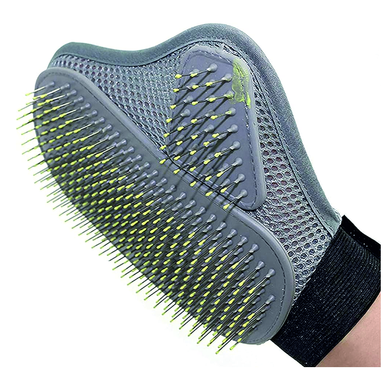 Γάντι για μασάζ και προσεκτική αφαίρεση τριχών ενώ χαϊδεύετε το κατοικίδιό σας. Προστατεύει από κόμπους στο τρίχωμα, και είναι ιδανικό για μακριές και για κοντές τρίχες. Πολύ αποτελεσματικό σε κατοικίδια που έχουν ευαίσθητο τρίχωμα και δέρμα για χτένισμα. Κλείνει στο χέρι με αυτοκόλλητο. Εύκολο στο καθάρισμα. Γάντι που αφαιρεί το περιττό τρίχωμα & προσφέρει απαλό μασάζ στο κατοικίδιό σας. Προσαρμόζεται στο χέρι σας & επιτρέπει την απομάκρυνση τριχών από όλα τα σημεία του σώματος του κατοικιδίου χωρίς να του προκαλεί δυσφορία. Οι τρίχες κολλούν σα μαγνήτης στο γάντι & αφαιρούνται εύκολα, με μία κίνηση. Κατάλληλο για σκύλους & γάτες, οποιουδήποτε μεγέθους.
