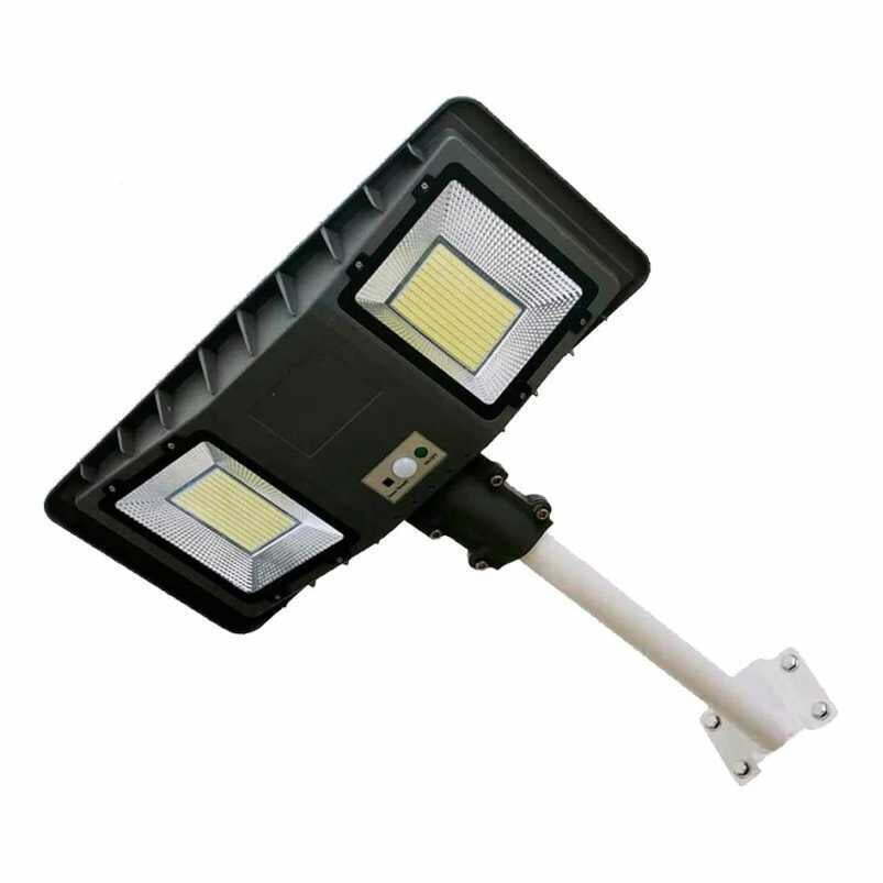 Ηλιακό φωτιστικό δρόμου σε μαύρο χρώμα, που συγκεντρώνει και αποθηκεύει ηλιακή ενέργεια για τη λειτουργία του, ώστε να μη χρειάζεται να συνδεθεί σε παροχή ρεύματος. Διαθέτει ανιχνευτή κίνησης για να ενεργοποιείται όταν εντοπίσει κίνηση εντός της εμβέλειάς του, αλλά και αισθητήρα φωτός για να ενεργοποιείται αυτόματα κατά τη δύση του ηλίου. Περιλαμβάνει τηλεχειριστήριο ώστε να το χειρίζεστε από απόσταση. Θερμοκρασία λειτουργίας από -30 έως +60 βαθμούς. Προτεινόμενο ύψος εγκατάστασης 5-6 μέτρα για φωτισμό 600 τετραγωνικών μέτρων. Η διάρκεια ζωής είναι 50.000 ώρες.