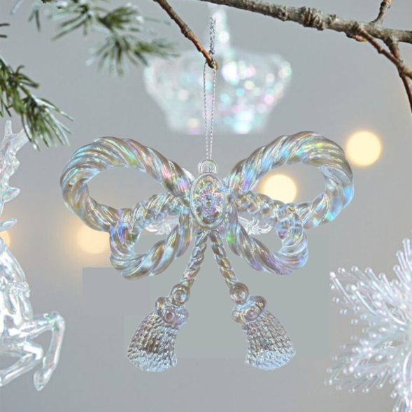 Αυτός ο ακρυλικός φιόγκος θα προσθέσει μια μαγική ατμόσφαιρα στο Χριστουγεννιάτικο δέντρο σας. Με κομψό σχεδιασμό και λεπτομέρειες που λάμπουν,  είναι ιδανικός για να δημιουργήσειμια γιορτινή διάθεση και να εντυπωσιάσει τους καλεσμένους σας. Είναι κατασκευασμένος από ακρυλικό υλικό.