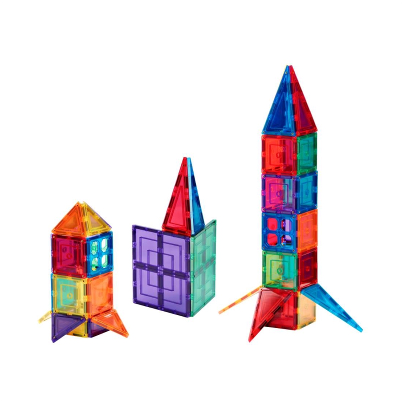 Mαγνητικά πλακίδια σε διάφορα σχήματα που εσωτερικά έχουν μαγνήτες για πιο σταθερές κατασκευές με πιο πολλές δυνατότητες. Τι χτίζουμε σήμερα; Ένας πύραυλος, ένα σπίτι, ένα κάστρο, δρόμοι γύρω από την πόλη μας ή ένας φανταστικός κόσμος. Τα μαγνητικά πλακίδια προσφέρουν στα παιδιά απεριόριστες εμπειρίες όπου ο μόνος περιορισμός είναι η φαντασία τους. Κάθε πλακίδιο έχει ισχυρούς μαγνήτες που επιτρέπουν να κατασκευαστούν ψηλά κτίρια και κατασκευές που δεν πέφτουν συνεχώς και απογοητεύουν τους μικρούς κατασκευαστές. Τα σετ μπορούν να προστεθούν για την επέκταση των παιχνιδιών και είναι συμβατά με όλες τις μεγάλες μάρκες.
