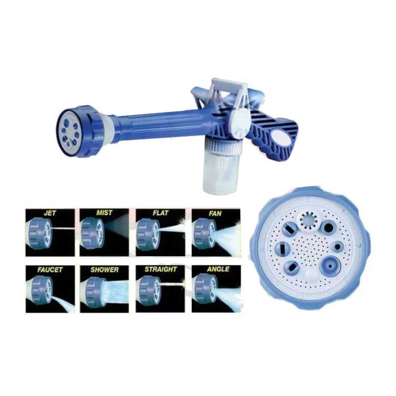 Ισχυρό Πιεστικό Νερού, με 8 διαφορετικά μπεκ και ενσωματωμένο δοχείο απορρυπαντικού. Τοποθετήστε το στο λάστιχο σας και κάντε παιχνίδι το καθάρισμα των δύσκολων εξωτερικών σημείων του σπιτιού, της βεράντας, του κήπου, του αυτοκινήτου ή του σκάφους σας. Χρησιμοποιήστε το για το πλύσιμο του αυτοκινήτου, όλων των εξωτερικών και δύσκολων σημείων του σπιτιού, των σκαλοπατιών, το καθάρισμα της βρωμιάς ή της μούχλας ανάμεσα στα πλακάκια, στους πλακόστρωτους διαδρόμους, των επίπλων της βεράντας, το πλύσιμο των παραθύρων που βρίσκονται ψηλά και ένα σωρό άλλες χρήσεις!