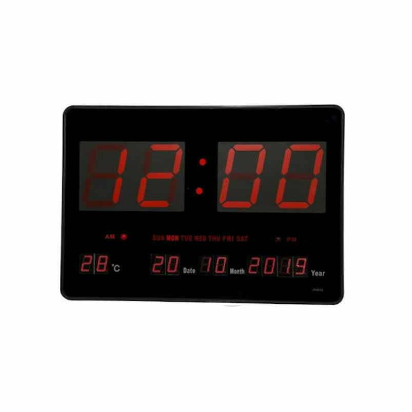 Ψηφιακό ρολόι με κόκκινους LED χαρακτήρες, που μπορεί να τοποθετηθεί είτε στον τοίχο είτε επιτραπέζια. Είναι κατάλληλο και για επαγγελματικούς χώρους. Με ενδείξεις ώρα, θερμοκρασία και ημερολόγιο. Κουμπιά ρυθμίσεων στο πίσω μέρος. Διαθέτει αυτόματο έλεγχο φωτεινότητας