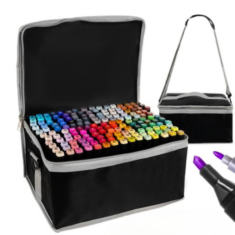 Σετ 168 τμχ Επαγγελματικοί Μαρκαδόροι Ζωγραφικής με Διπλή Μύτη Με Τσάντα Μεταφοράς