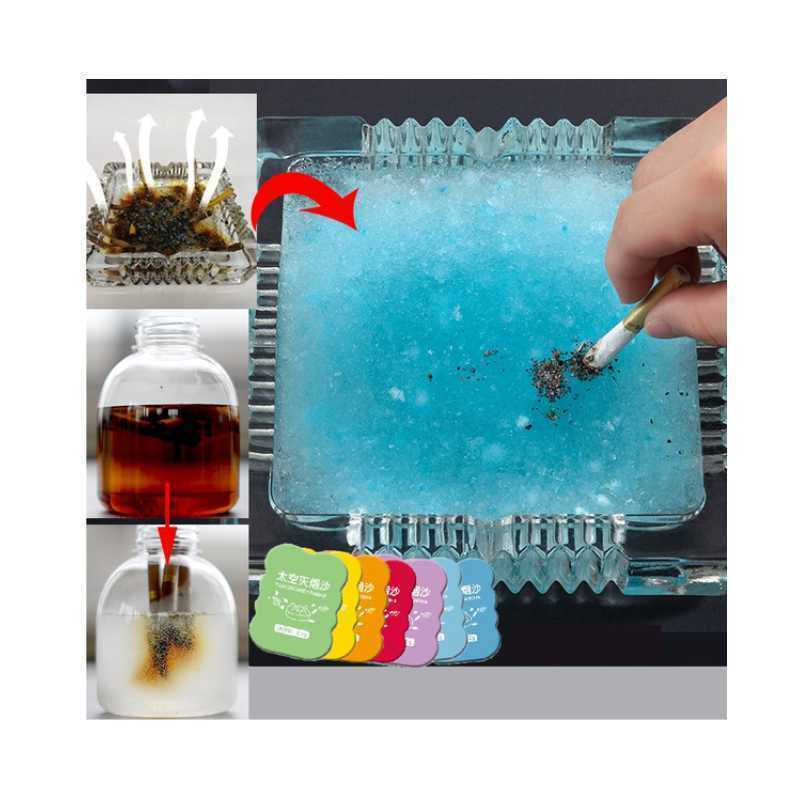 Super τασάκι για την αφαίρεση οσμών με 10 “τασάκια” τζελ η συσκευασία. Απλή χρήση ανοίξτε ένα πακέτο άμμο στο τασάκι, προσθέστε τη σωστή ποσότητα νερού για να διαλύσετε την άμμο και σε 1 λεπτό το μετατρέπει σε ένα υγρό τζελ. Όταν καπνίζετε, ο καπνός θα απορροφηθεί στο τζελ. Τοποθετήστε την στάχτη και τα αποτσίγαρα στο τασάκι και αυτά σβήνουν αμέσως. Με άρωμα. Ιδανικό για σπίτι, γραφείο, ξενοδοχεία, μαγαζιά, αυτοκίνητο κ.α. Για πολλές χρήσεις.