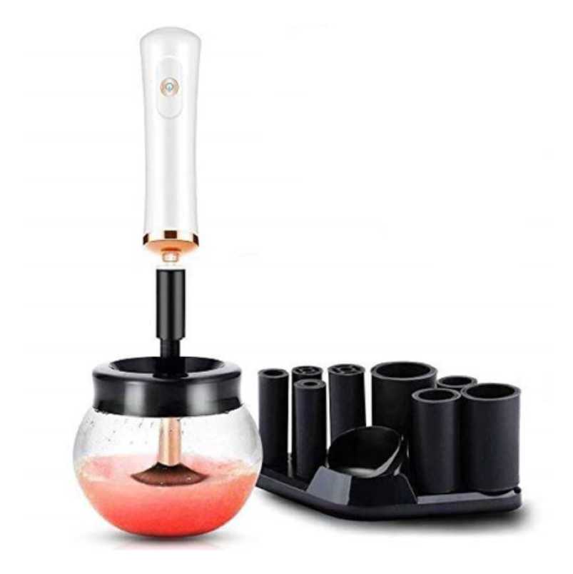 Η ηλεκτρική συσκευή καθαρισμού πινέλων μακιγιάζ διαθέτει μια περιστρεφόμενη λειτουργία η οποία καθαρίζει τα πινέλα μακιγιάζ μέσα σε λίγα μόλις δευτερόλεπτα. Εξοικονομείστε χρόνο και καθαρίστε τα πινέλα σας γρήγορα και με ακρίβεια. Οδηγίες χρήσεις: Επιλέξτε από τις διαφορετικές κεφαλές εκείνη που ταιριάζει με το πάχος του πινέλου. Τοποθετήστε το στήριγμα στην άλλη πλευρά. Βάλτε το πινέλο στο δοχείο βυθίζοντας το κάτω από το νερό και ανοίξτε τη συσκευή για 5-10 δευτερόλεπτα. Αφαιρέστε την κεφαλή του πινέλου από το νερό και ενεργοποιήστε τη συσκευή για 15-20 δευτερόλεπτα για να στεγνώσετε τις τρίχες.